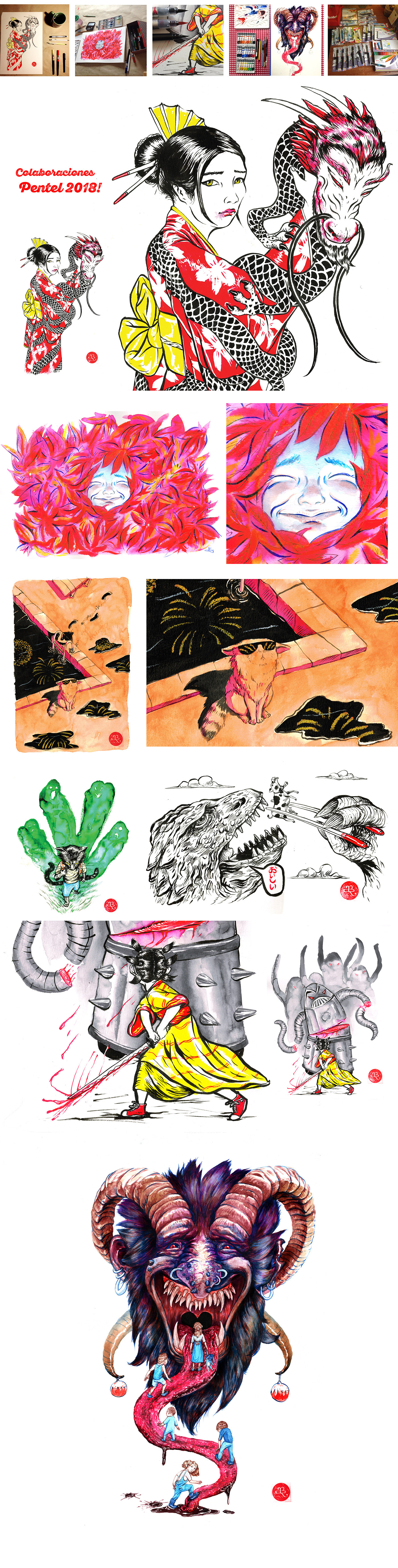 Ilustraciones realizadas dentro del patrocinio con marca Pentel desde el 2018.